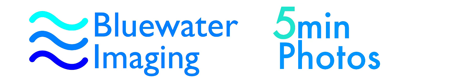 My business, Bluewater Imaging, is dedicated to that purpose and my newsletter, 5 Minute Photos, is the public voice that spreads the word and chips away at the confusion, uncertainty, and guilt I’ve seen surround this photography thing which caught the world by surprise. When mobile photos/cameras ended up in everyone’s pocket, pictures suddenly became the world’s first language and we - both the experienced and the accidental photographers among us - are now trying to understand and manage this amazing/confusing/powerful/overwhelming/priceless/ever changing new experience.