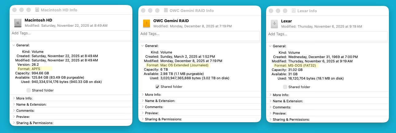 Storage space is becoming an issue for us all. Particularly those who are active photographers and videographers. Cloud storage is convenient but expensive. For some or all of our file storage physical drives are an essential part of our photo management. It may be for active storage, networked access, or long-term archiving, but we will all be buying more of them for all kinds of tasks. Whether we format it ourselves or instruct others to do it for us, knowing how to care for our data on the devices we have has become the 21st century equivalent of properly inflated tires and a regular oil change.