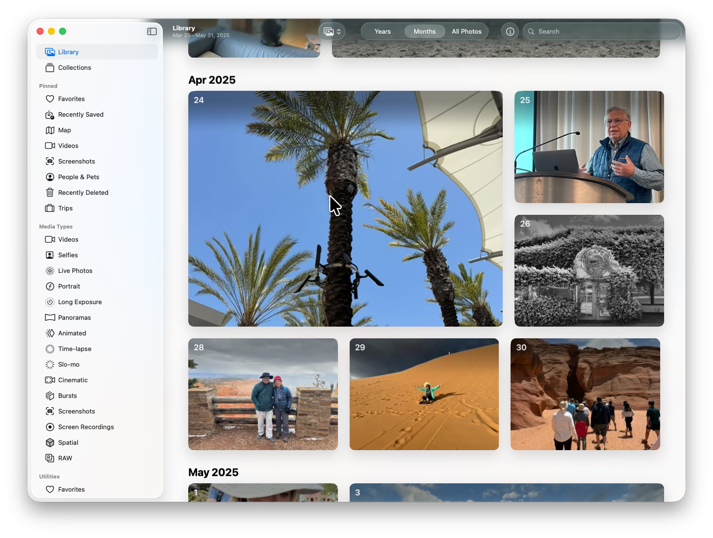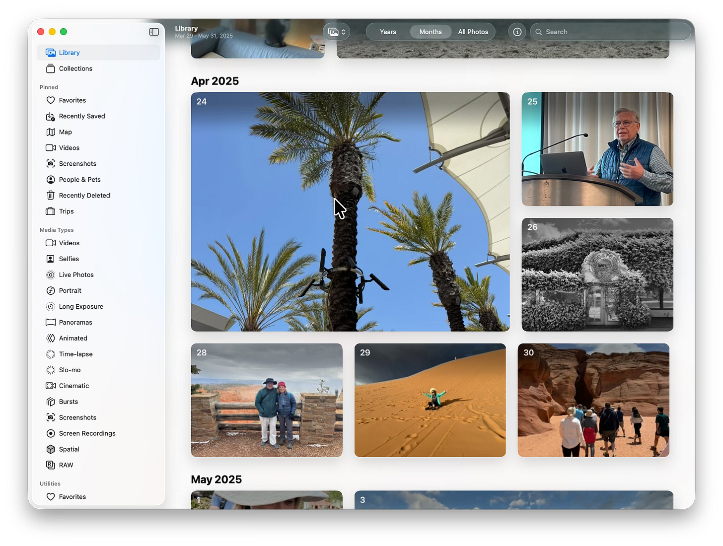 Like most summary views in Apple Photos, the Months view isn’t cluttered up by screenshots and utility photos. Just the best stuff so you can return to your favorite moments pretty quickly. Much easier than scrolling endlessly through the whole Library.